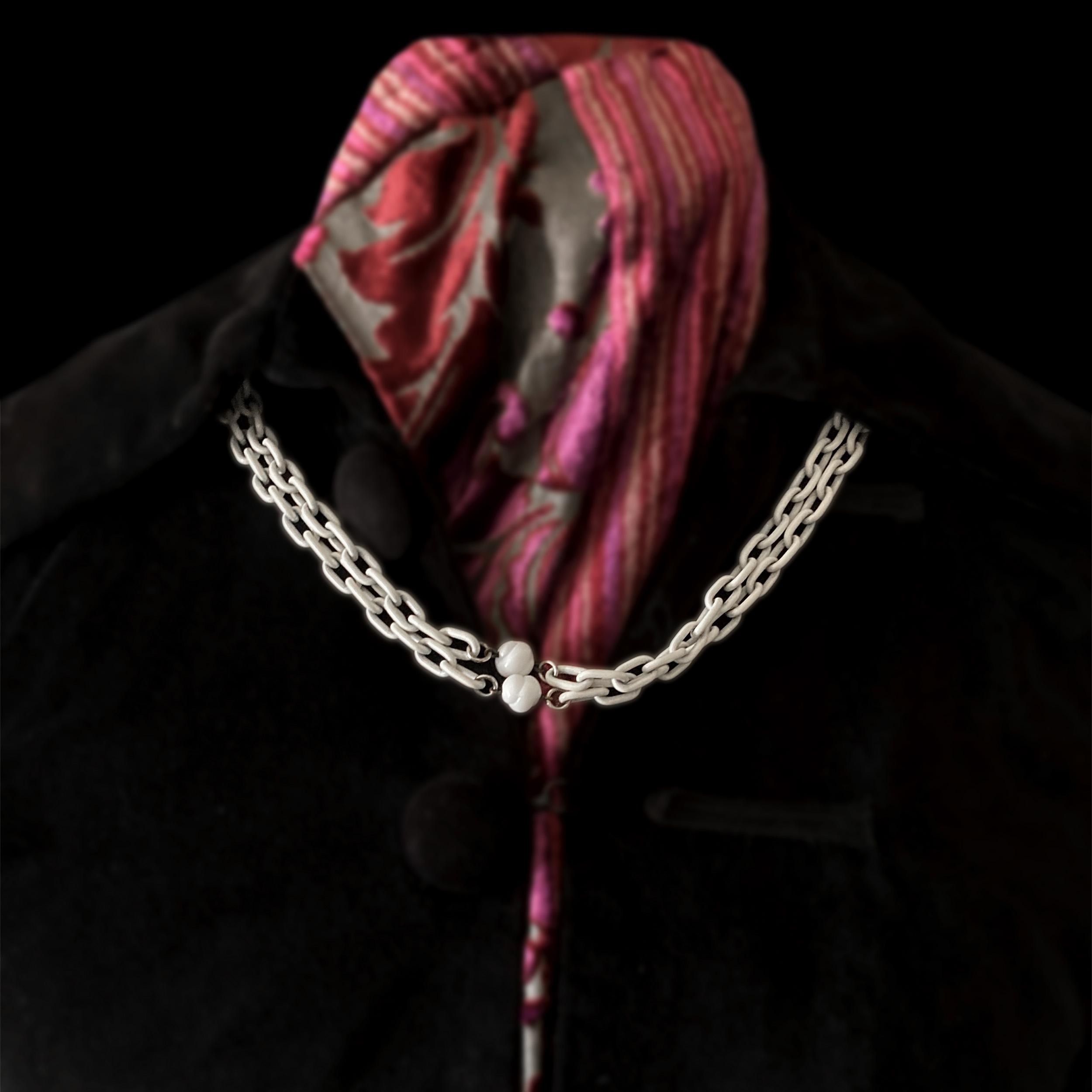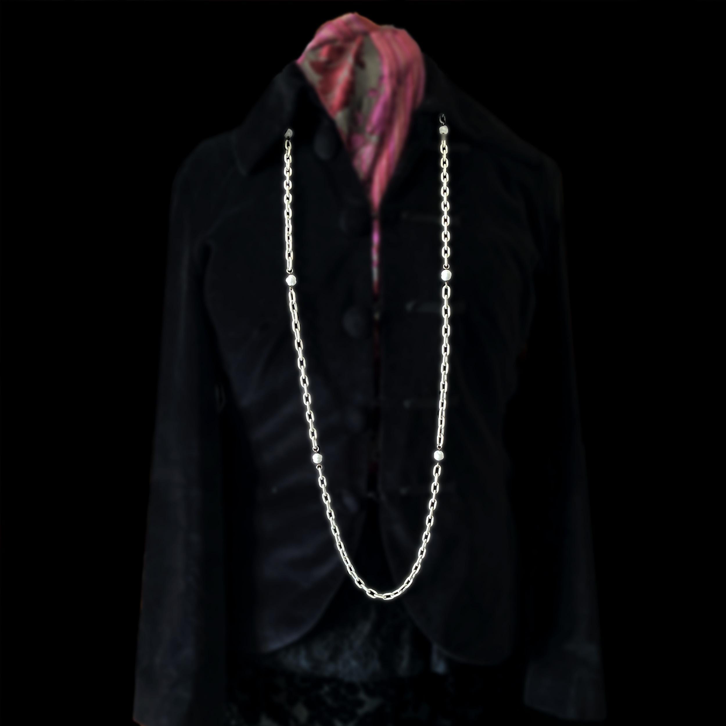 The necklace is lightweight and easy to layer. Unusual length makes it suitable for double-wrapping or styling with other vintage chains.